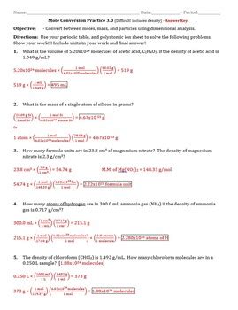 Read Mole Conversion Review Questions Chemistry Answer Key PDF