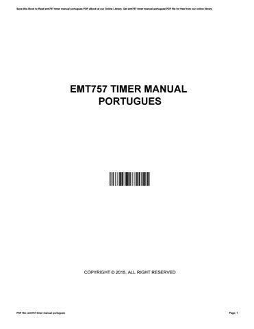 Read Online emt757 timer manual portugues Reader By Click Button. emt757 timer manual portugues it’s easy to recommend a new book category such as Novel, journal, comic, magazin, ect. You see it and you just know that the designer is also an author and understands the challenges involved with having a good book. You can easy klick for detailing book and you can read it online, even you can download it