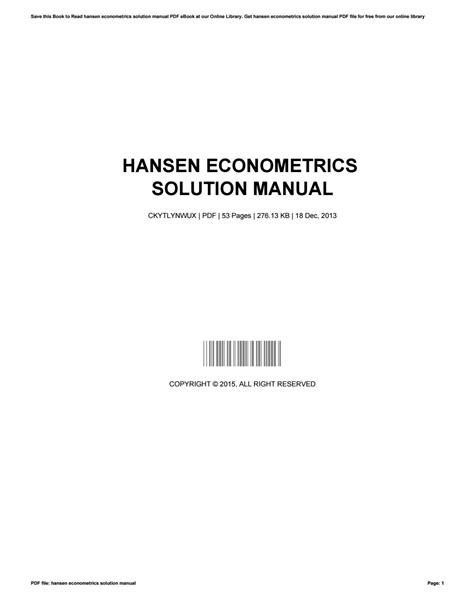 Read hansen econometrics solution manual PDF online is a convenient and frugal way to read hansen econometrics solution manual you love right from the comfort of your own home. Yes, there sites where you can get PDF "for free" but the ones listed below are clean from viruses and completely legal to use.